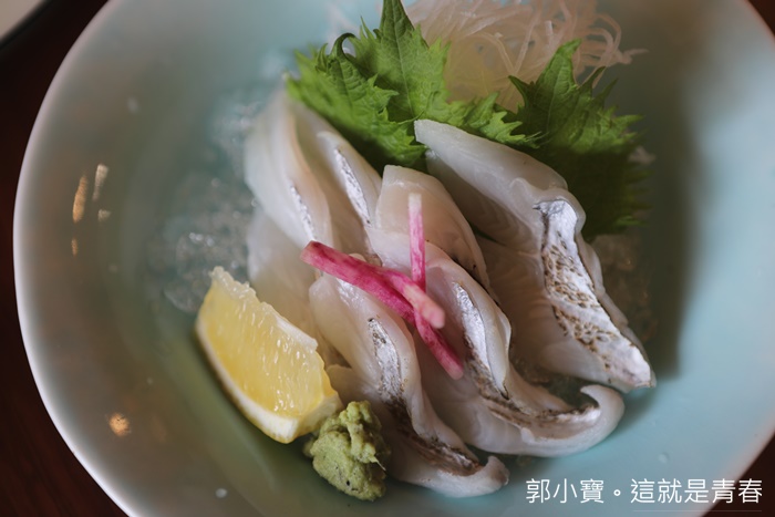 本名叫做「角魚」,因為這種魚外表有稜有角而且非常醜,能有信心料理這魚的日本料理師傅真的不是很多,透白色的粉嫩肉質厚薄均稱,吃起來鮮甜嫩滑的滋味真的讓人難忘。 |