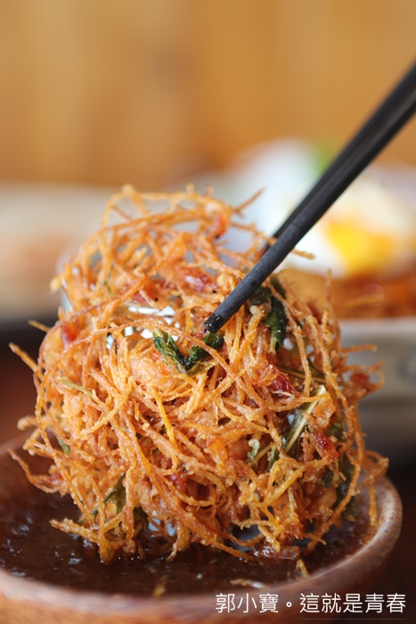 這天婦羅真的要好好推薦一下,使用東港櫻花蝦、京都水菜、日本金時(不知道是不是鳴門金石),日本的地瓜大部分稱為芋,其中最出名的地瓜品種試金時,所以日本只要看到金時兩個字也等同於地瓜的意思,最有名的金時莫非鳴門金時,將金時刨成絲後不裹粉加入京都水菜還有櫻花蝦下去炸真的很ㄕㄨㄚˋ嘴,金時本身的甜味搭配櫻花蝦的甜味跟香氣,一整個超美味的,單吃就很好吃了!!! |