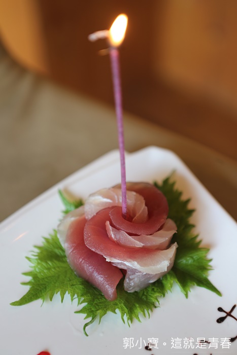 就是超美的生魚片花啦,上面還有個煙火棒好美麗,這新鮮的生魚片切的都超厚的,這樣的生日禮物真的讓人想要當月生日的時候天天都來這邊吃飯,點個丼飯就有生魚片可以搭配,真的好划算XD |