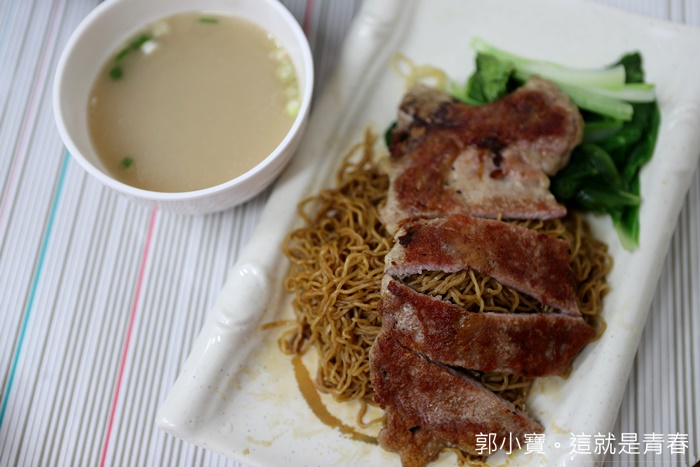 這樣一盤澳門豬扒拉麵換成蛋麵價位來到120元,乍看一下有點驚人,但是其實我個人覺得非常值得,溫體豬肉現點現煎的豬肉,空運來台的蛋麵加上撈麵會附送一碗白湯,些許燙青菜,我覺得值得,最重要是好不好吃道不道地啦XDDD |