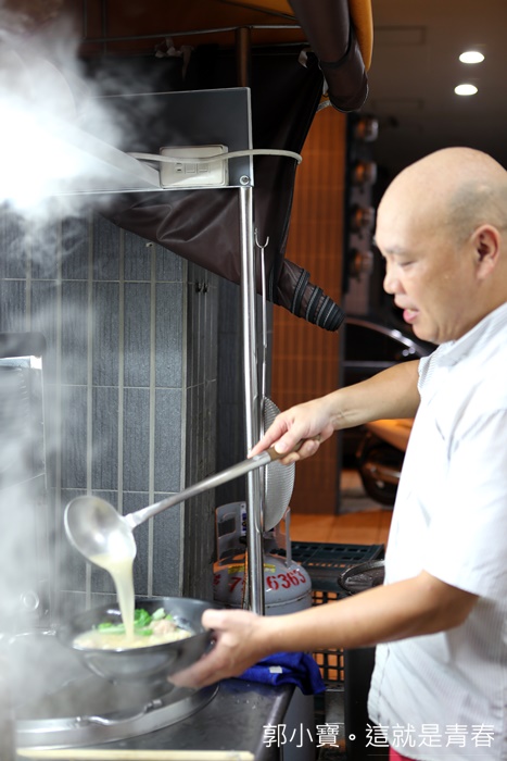 照片中的人就是巧來的老闆,濃濃的廣東腔講話非常快,外帶內用人潮都非常多,目前好像只有老闆大佬跟另一個女性員工,所以感覺上有點忙不過來,看看舀起來乳白色的湯頭就很令人流口水,香港人的湯頭講求鮮、香、嫩、滑四大要訣,不知道這邊雲吞麵的湯頭是否如我想像中的美味。 |