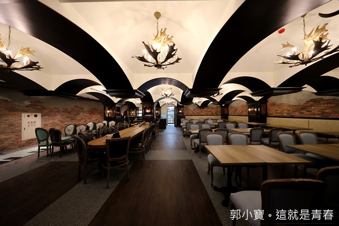 二樓的部分有一半是餐廳,怎會連餐廳都那麼美,燈飾也都很歐風,用鹿角造型帶出濃濃的城堡風,看起來可以容納不少人。 |
