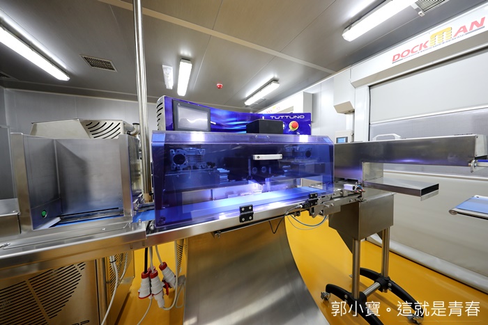 裡面的設備看起來好像很厲害,全自動化的設備據說國內非常罕見,可以跟日本作出相同水準的巧克力以外,就連那0.3巧克力薄片還夾心的巧克力就是這一台機器才有辦法做出來。 |