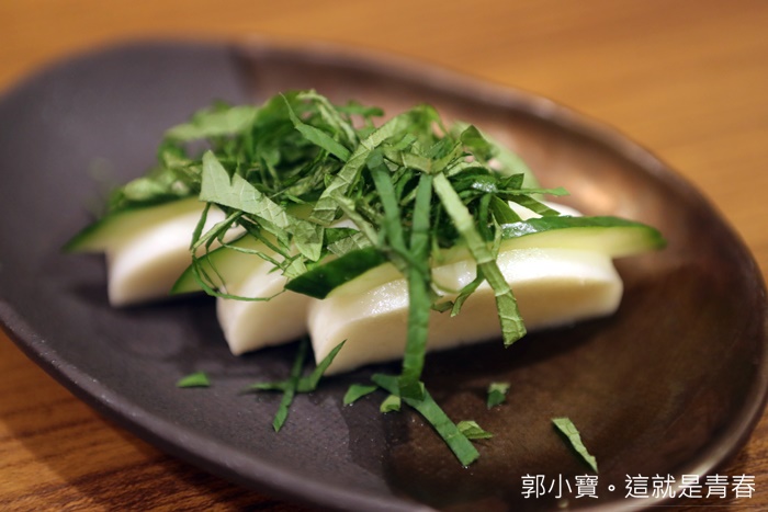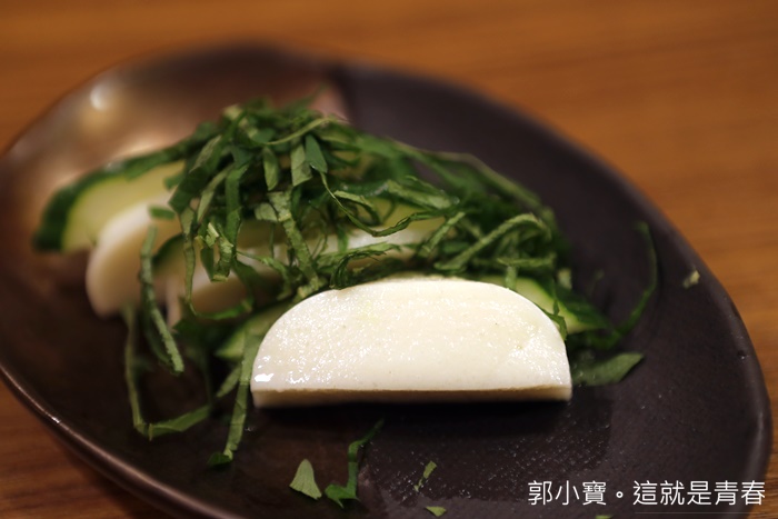 其實我點他單純是他還滿有趣的,我第一次看到這芥末魚板就很有興趣點來看看,沒想到是芥末魚板三明治,將魚板中間夾入了小黃瓜塗上芥末,但是入口最讓我驚艷的是紫蘇,一入口淡淡的紫蘇味就很舒服,搭配魚板彈牙的口感還有小黃瓜的多汁,最後的芥末緩緩的上衝,整體的味蕾變化非常豐富,大推薦!!