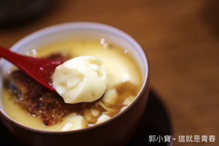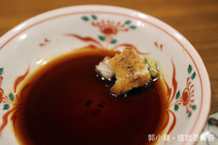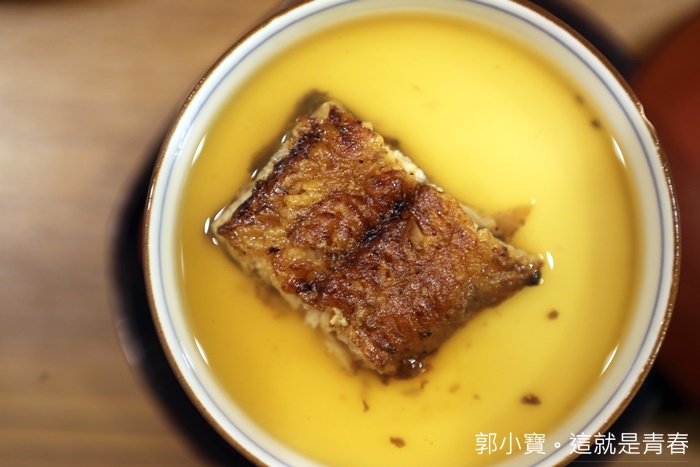 據說是日本田舍庵社長親自研發給台灣小倉屋的一道料理,我吃了日本那麼多的鰻魚名店,這還是我第一次看到有鰻魚高湯凍,所以立馬就決定點上一份來試試看,高湯凍用用浦燒鰻魚丁跟一些食蔬還有昆布高湯熬煮出來再冷卻製作出的,吃起來沒有半點腥味頗為爽口,吃了一整份也不會覺得膩,好吃!! |