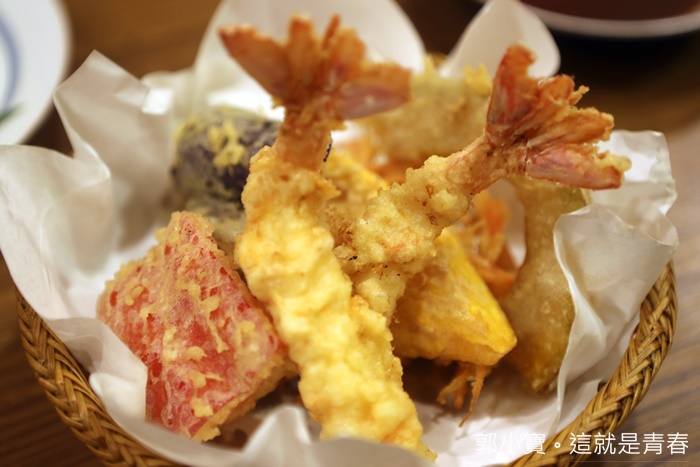 蝦子的品質很不錯,裹粉粿的很薄,但是麵衣依然非常酥脆,蝦肉非常彈牙且尺寸還滿大的,非常滿足的炸蝦,但是我更喜歡他的野菜天婦羅,炸的功力非常不錯,我個人還滿推薦可以沾他們提供的醬油,很好吃!! |