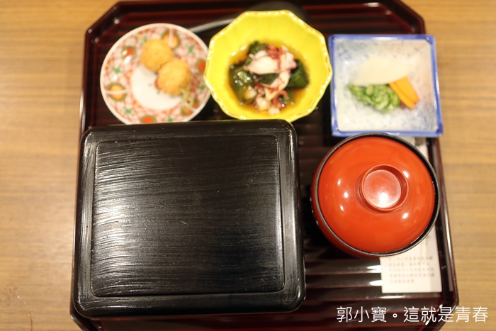 還有簡單的醬菜跟湯品,如果加價的話湯品還可以換成鰻肝湯跟有飯後甜點。 |
