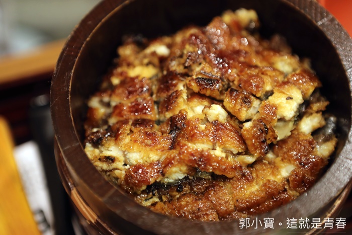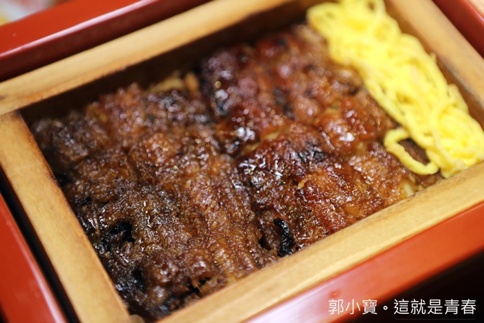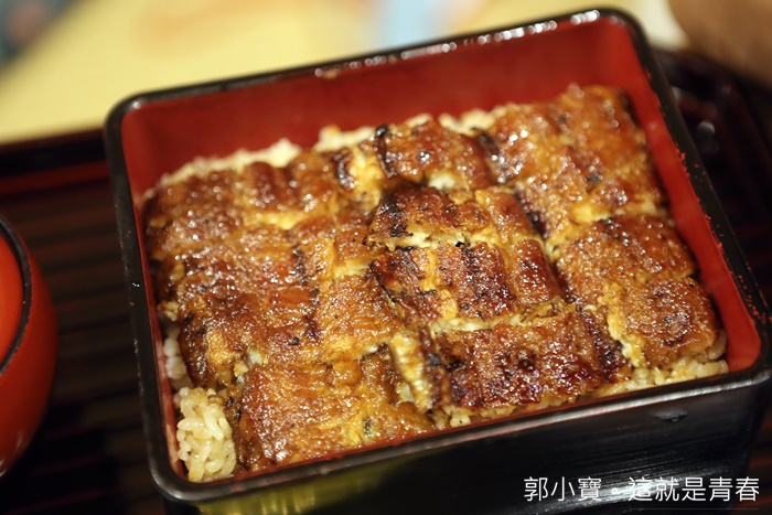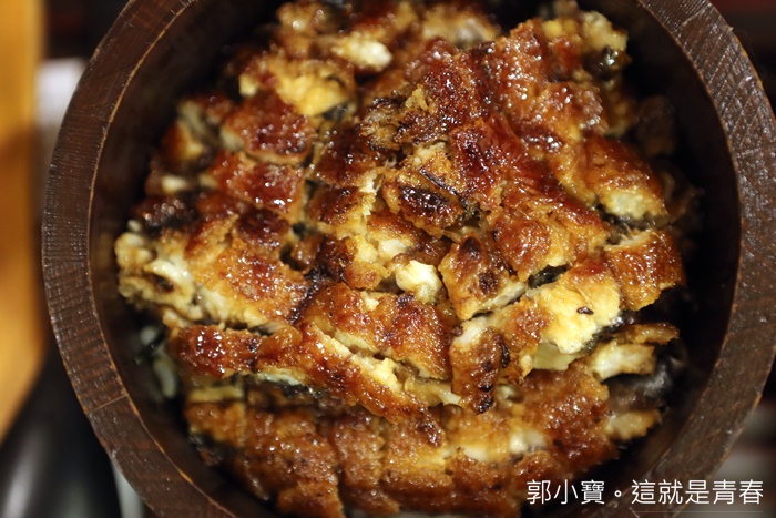 鰻櫃定食的鰻魚飯是用木盆裝著,上方的蓋子也是木蓋非常古色古香,打開後一樣一股清香飄散,因為是碗裝所以沒辦法看的出來很仔細鰻魚的份量,但是感覺還是份量不少。 |