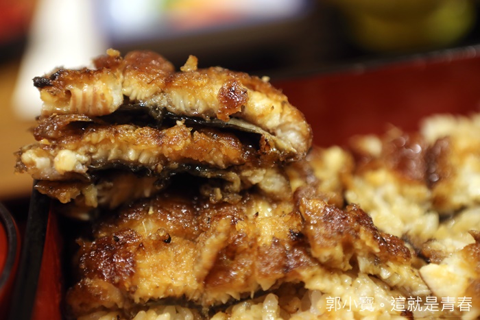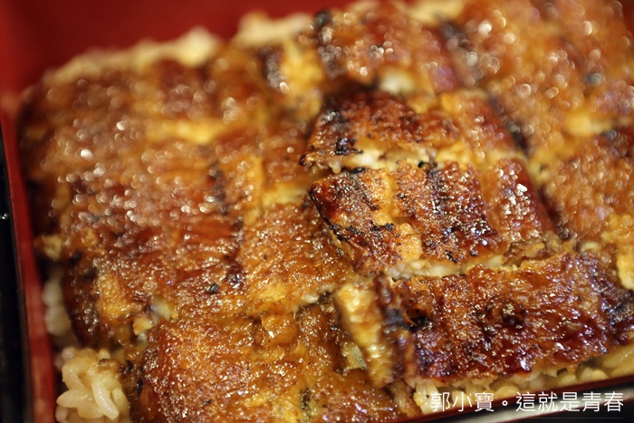 這個就是特級十切的鰻魚飯盒,一打開蓋子就可以聞到炭燒的香氣跟醬香味,小倉屋的鰻魚串燒秉持著田舍庵本舖的作法,是從生的烤到熟沒有經過蒸的部分,這真的需要很高的專注力跟長時間的烤工,烤出多餘的油脂卻不焦黑。 |