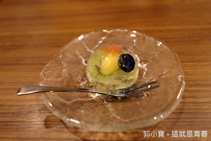 最後的飯後甜點水信玄超級好吃,淡淡的柚子香氣搭配水果不膩口,少數吃到那麼好吃的水信玄,加價購才會有這飯後甜點,但是我覺得非常值得!! |