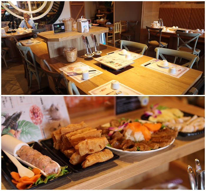 我也喜歡他桌子的設計,在長桌中間會有突出的一個方形版,這樣點了很多的食材也不會覺得桌面很卡沒地方放,順手放到上方即可。 |