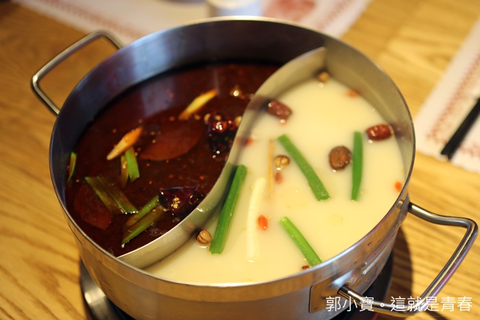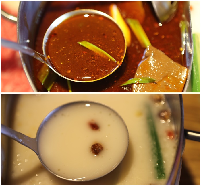 店內的鴛鴦鍋送上來的時候看起來還滿不錯的,分別是麻辣、養生兩種湯頭,一個人的開鍋費是120元,麻辣鴨血跟豆腐可以無限續加,其實我個人覺得有鴨血跟豆腐搭配白飯就可以吃很飽了XD |