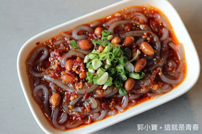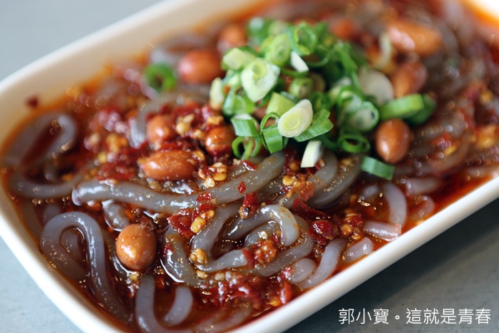 招待川味涼粉的部分則是看人數給予,我們當天是兩個人用餐,所以就送上一盤,量其實是足夠的,川味涼粉還滿開味的,辣度真的挺嗆的,花生味也很重,整體上是好吃的川味涼粉。 |