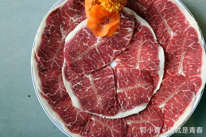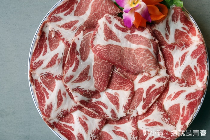 霜降牛肉的顏色看以來相當不錯,重點是牛肉不會一夾就散開,油花的紋路也不錯,看起來就滿誘人的。 |