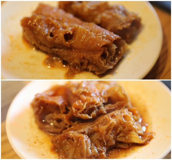 滷水的部分水準也很不錯,尤其大腸的表現我最喜歡,大腸真的夠油夠肥夠好吃,吃的我一整個是滿嘴油,牛筋的部分建議煮久一點,牛肚也不會像橡皮筋一樣咬不爛,基本上他們家的滷水是很夠水準的。 |