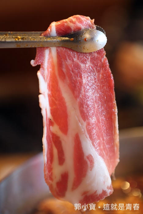 來了來了,據說綿羊豬是灑椒。麻辣|鴛鴦火鍋的鎮店之寶,綿羊豬大約在兩年前我就在台北吃過了,差不多就是伊比利豬登台的前後綿羊豬也一起攻佔市場,這特別的綿羊豬似乎在高雄比較少見,價格當然也是要價不斐,不過看他的油脂跟品質就知道沒話說。 |