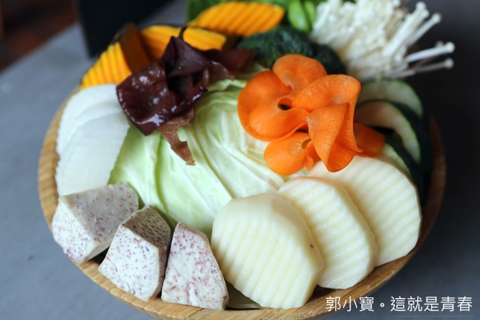 其實蔬菜拼盤都是我家太妃堅持要點來熬白湯的,他個人吃飯一定要搭配很多蔬菜,尤其芋頭更是熬煮湯頭的好幫手,份量也給的滿大方的。 |