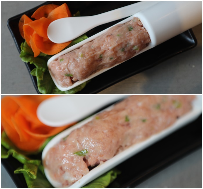 據說是隱藏版的招牌商品,海鮮搭配豬肉打成漿這個真的還滿少見的,每挖一杓確實可以看到裡面有很多餡料。 |