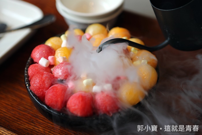 我只能說飯後甜點灑椒。麻辣|鴛鴦火鍋真的一整個贏了,這也一整個太華麗太搞工了吧,上層堆著滿滿的球形新鮮水果、底層鋪著碎冰,中間還有乾杯噴發,這也太療育了,讓人少女心無止境的大噴發啊!!!!!!!!! |