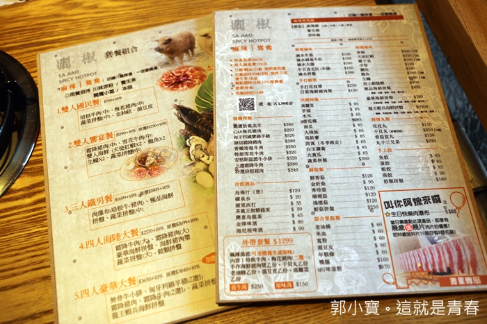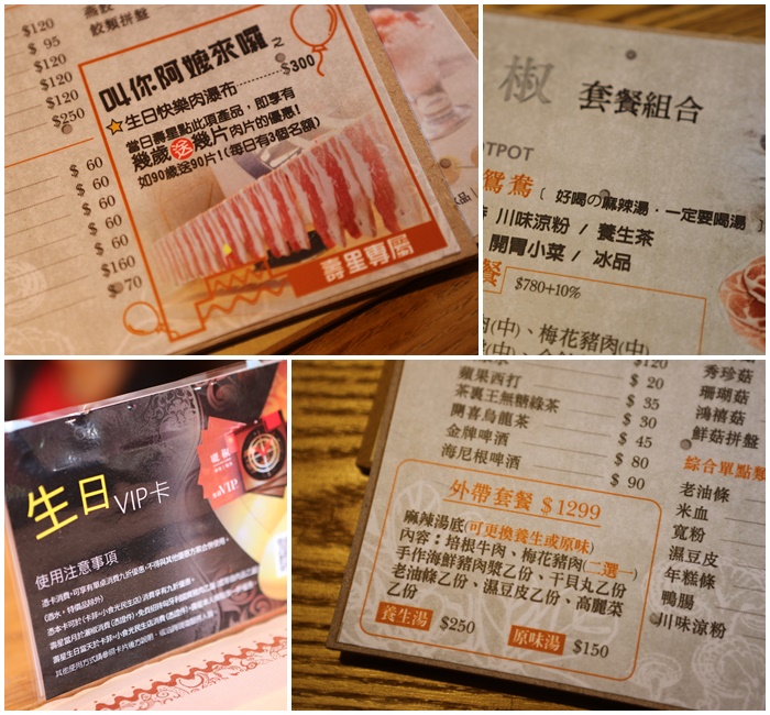 灑椒。麻辣|鴛鴦火鍋的現場活動非常多,最吸引我注意的就是揪妳阿嬤一起來吃,只要阿嬤生日當天揪阿嬤一起來吃,看阿嬤幾歲就送幾片肉真的超大氣,菜單上還特別註明辣湯頭是可以喝的以外,還有各式各樣的活動,外帶套餐感覺起來也非常划算,改天再來外帶一份試試看。 |