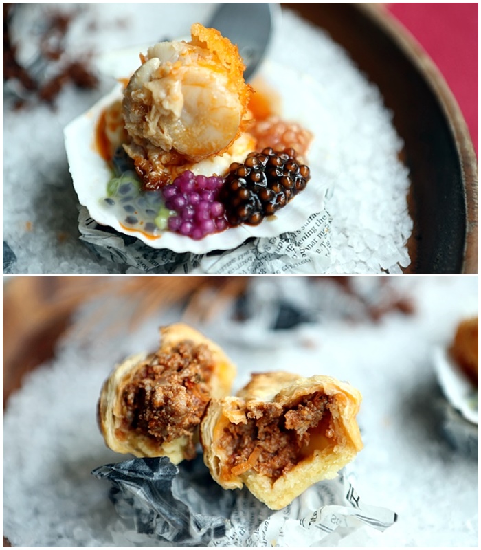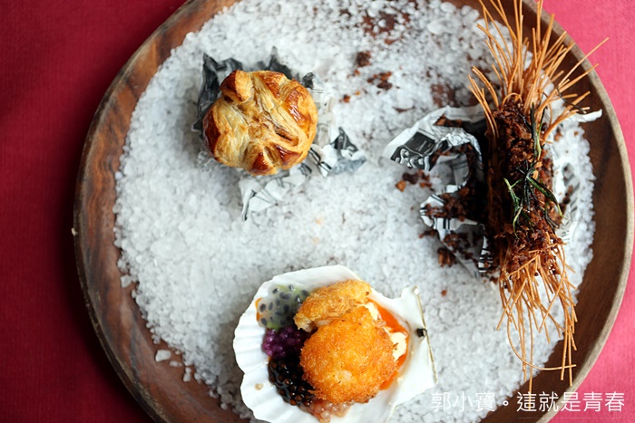 濃縮蝦油麥年海扇貝 迷迭香可可酥炸淡菜 澳洲羊梅花酥烤小品