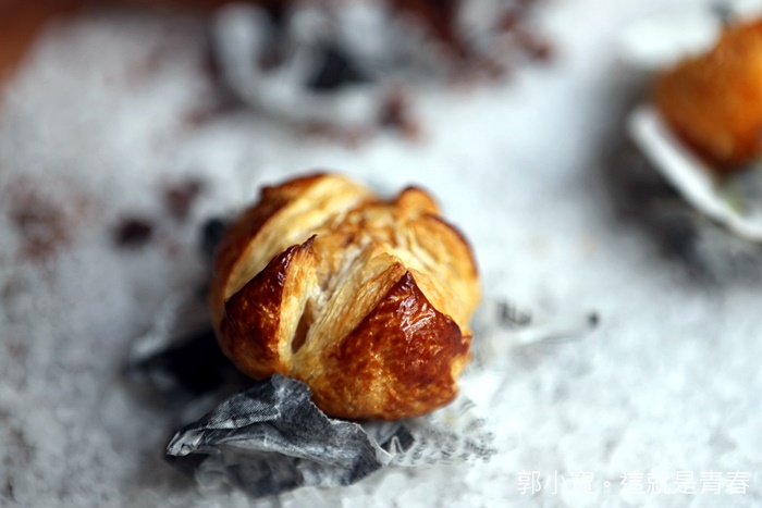 扇貝的品質很好,一口塞進嘴裡的滿足感大破表,咀嚼散發出來的大海鮮甜味真的很迷人,羊梅花烤小品剝開後就可以看到內餡,吃起來味道很像叉燒包的內餡,滋味鹹鹹甜甜的非常討喜。 |