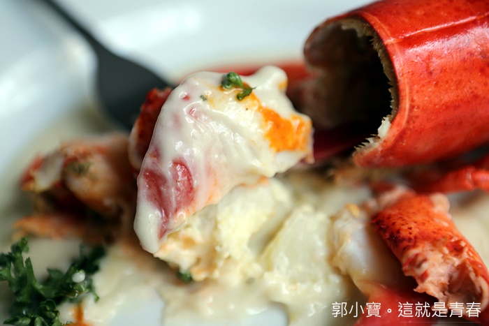 龍蝦肉的滋味就是無可比擬的好滋味阿,蝦肉的口感非常緊實彈牙,不是那種鬆散的口感,重點裡面竟然還有北寄貝,北寄貝的口感也是我超愛的,在貝類裡面北寄貝也算是高檔食材,口感更加彈牙,搭配小洋蔥絲絨醬汁真的超好吃! |