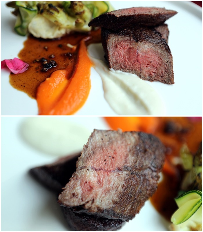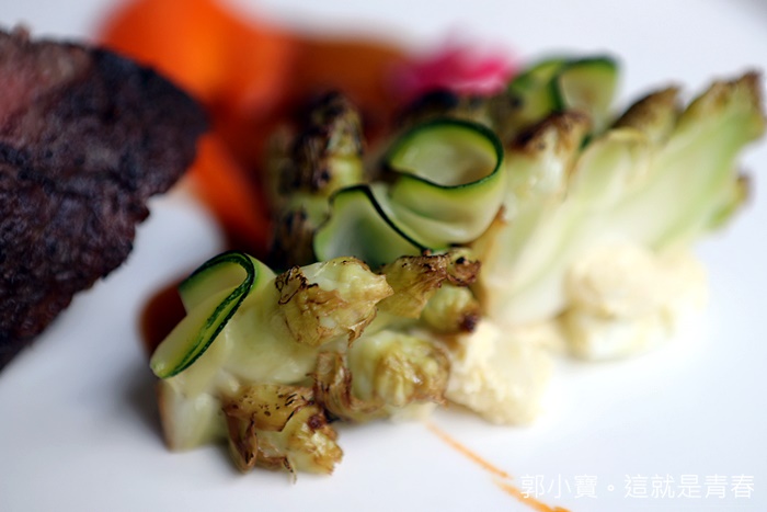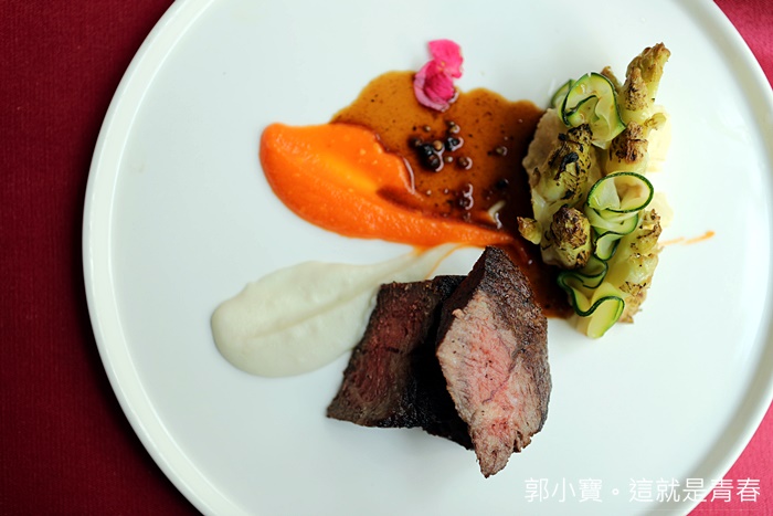 這被譽為最接近日本和牛血頭的巧克力和牛從小就被餵養巧克力、小熊軟糖、草莓等甜食的牛隻肌紋生出油花,味道異常的鮮美,主廚料理的功夫剛好生熟半分不見血,本來我以為過熟,但是入口後那軟嫩的口感一整個恰恰好以外,巧克力和牛深層的焦糖香氣真的淡淡的散發出來,讓人一整個愛到不行。 |