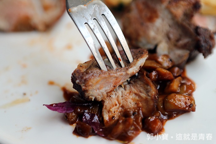 如果讓我選擇台灣美味的豬肉的話,那我心裡面就是葛瑪蘭豬跟伊比利豬了,伊比利豬號稱豬界的勞斯勞斯,這兩年的知名度非常響亮,伊比利豬是少數可以不用做全熟的豬肉,給的份量也頗多,淋上主廚特製的小茴香蘋果醬汁,香氣帶點甜膩味非常舒服。 |