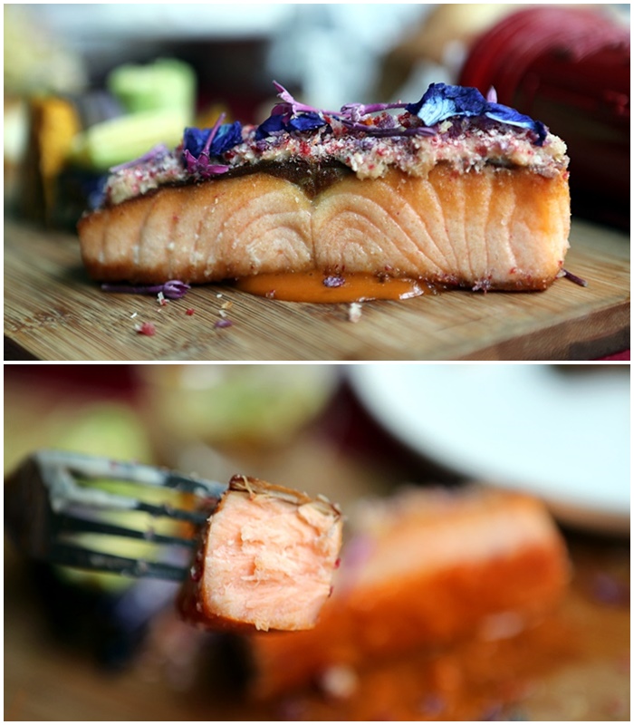 鮭魚燒烤的熟度剛剛好,沒有過多的油脂,可以盡情享受龜魚的肉質口感,一口咬下那紮實的魚肉,咀嚼著特有鮭魚的滋味真的超級過癮。 |