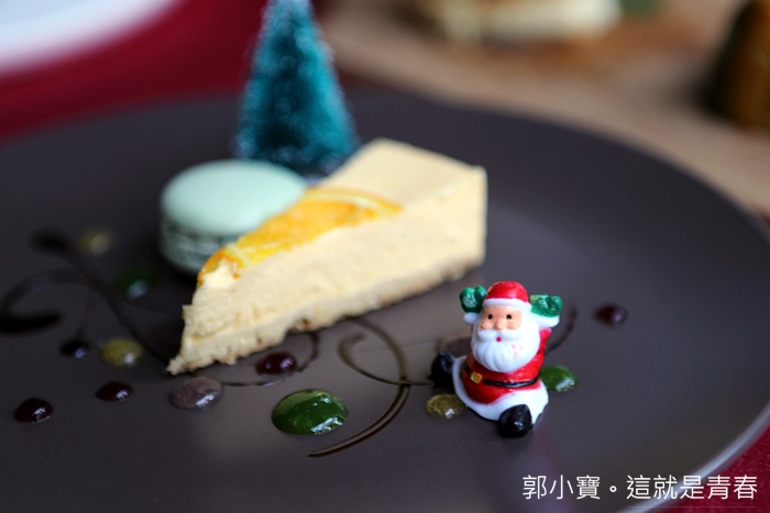 這次的蛋糕我異常覺得很好吃,水果風味的輕乳酪蛋糕非常夠水準,而且盤飾非常有聖誕氣氛,聖誕樹跟聖誕老公公都出現了XD |