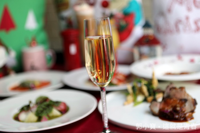 餐點一開始會先來杯氣泡酒漱漱口,這氣泡酒也是義大利產區的限量酒款,針對聖誕節推出的氣泡酒,只能說非常用心的世奇團隊,每次節日餐都是一整套的完整規格。 |