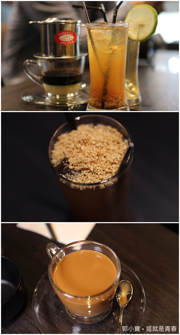 我們點了比較有越南特色的飲品,我跟太妃最愛的還是越南咖啡,加了煉乳的咖啡就是一整個好喝阿,煉乳家超多的,香茅檸檬茶也不錯,羅望子對我來說偏酸了一點,太妃比較喜歡偏酸的飲料。 |