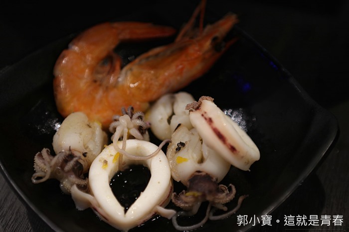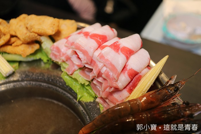 基本款的肉品跟海鮮通通都已經在鐵帽鍋上,鐵帽鍋上的肉品是美國胸腹肉肥牛,我個人還滿喜歡這樣的肥牛,還有我很喜歡的海鮮小章魚以及透抽,看起來都相當新鮮,量也給的不少。 |