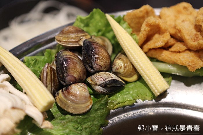 菜盤的部份也很大份,其食鐵帽鍋上已經有一些蔬菜了,除了蔬菜以外依然有蛤蜊跟白蝦及其他火鍋料,整體來說算是相當豐富的菜盤。 |
