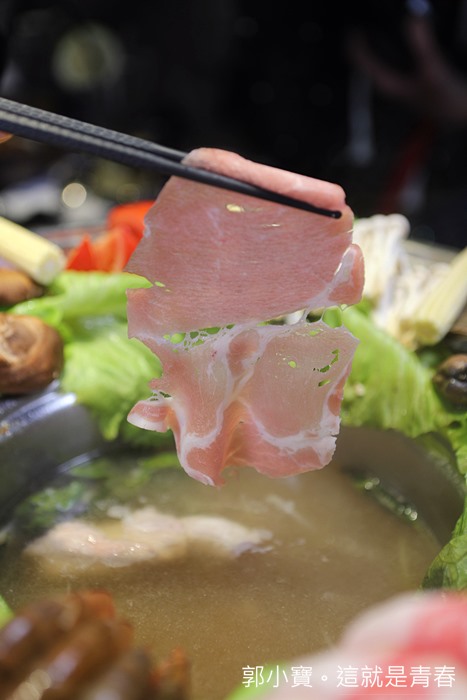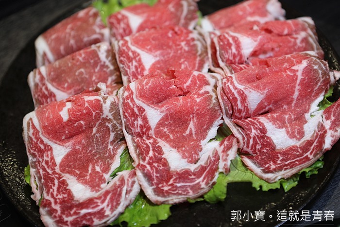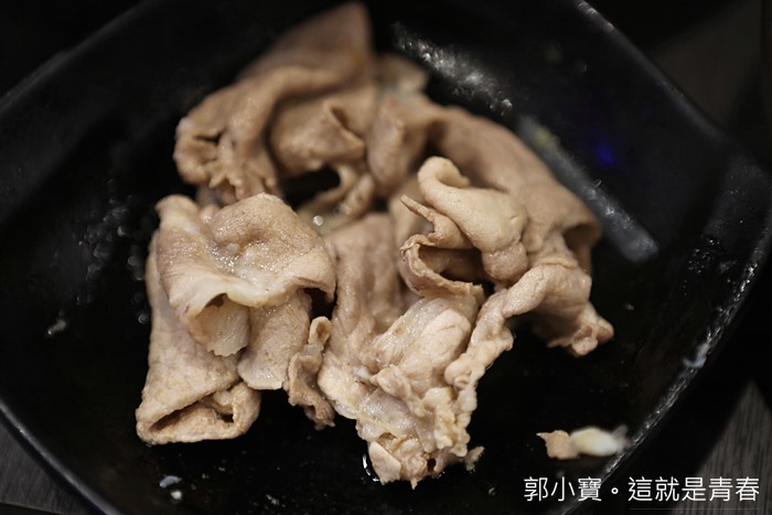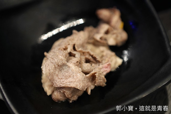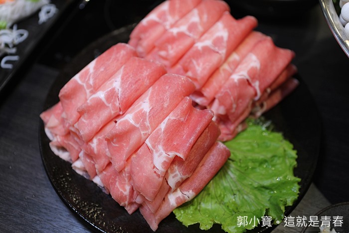 鐵帽鍋除了鍋緣的牛肉以外,還有附上450g的梅花豬,份量非常的多,四個人吃也很滿足,我個人火鍋豬肉片偏愛梅花豬,吃起來比較不會那麼油也不會過膩。