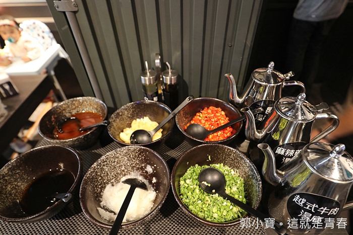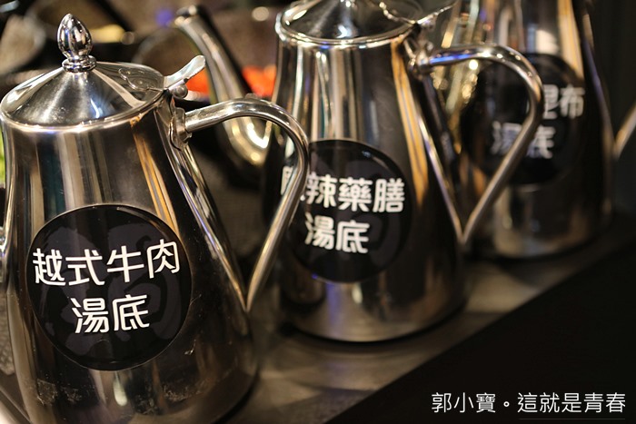 忘了跟大家報告,湯底的部分也同樣放在自助吧台上,越式牛肉湯底真的很不賴,我接連喝了好幾碗,尤其熬煮牛肉跟海鮮厚的湯頭更甜。 |
