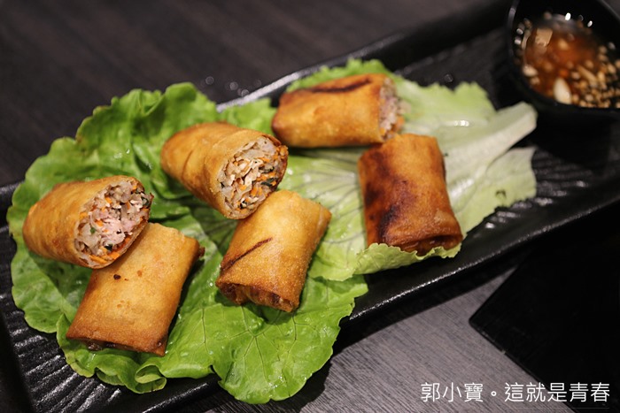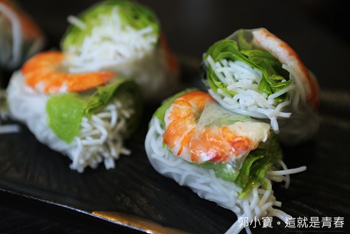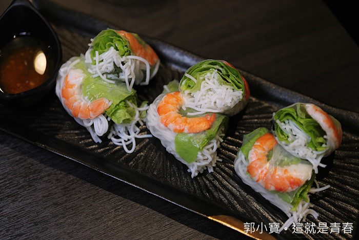 越南料理店必點的越式生春捲這邊也可以吃的到,夏天吃一卷越式生春捲真的幸福破表,裡面的米線搭配水煮蝦子,然後再沾點酸辣的酸甜魚露醬真的超解暑,這就是初夏的滋味,隱藏版的就是推薦大家沾是差拉醬,滋味更是與眾不同!! |
