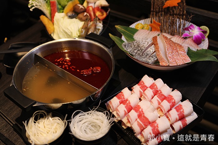 其實我很推薦它們家這一份雙人麻辣鴛鴦鍋,600元的價位可以擁有海鮮跟肉品真的還滿超值的,魚盤呈裝的魚肉分量很多,魚肉的部分有鱸魚、鯛魚、青魚,很適合搭配昆布鍋,熬煮起來的湯頭更是鮮甜。 |