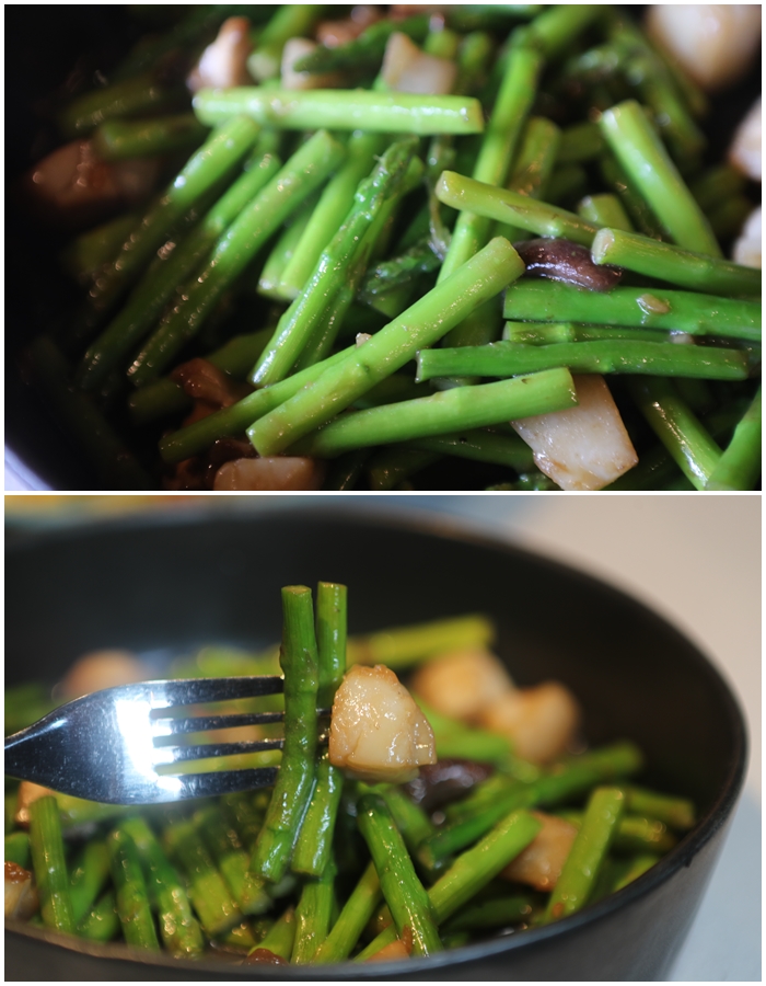 蘆筍非常的脆不帶油,所以吃起來不會有一點油膩感,蘆筍跟香菇真的是好朋友,香菇的香氣提出蘆筍的甜味,干貝更是炒到嫩口不會有過老的感覺。 |