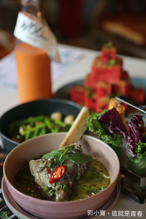 不管是空間還是餐食的部分,WOO泰式料理確實都非常用心,加上盆栽真的非常的用心,金屬配件搭配皮革也很有味道,庭院呈現的東南亞度假氣氛也很到位,真的讓我太晚知道高雄原來也有WOO那麼好的泰式餐廳,下次經過這邊別再錯過它了,它就躲在這森林的後面!!! |