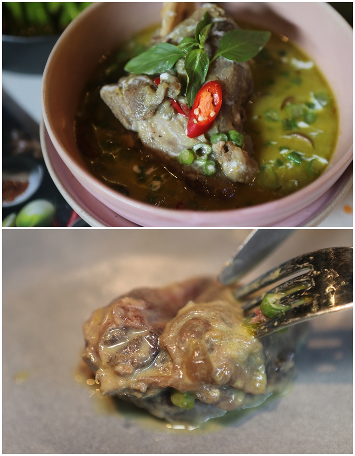 羊肉的嫩度處理得非常好,吃起來一點都不會卡牙,筋的部分也不會不好嚼口,淋上綠咖哩真的很好下飯,重點羊膝的軟嫩真的讓我頗為意外,處理得非常嫩好入口。 |