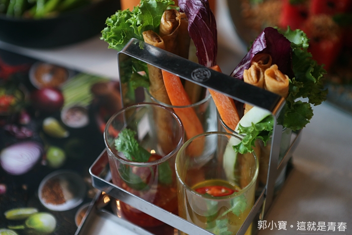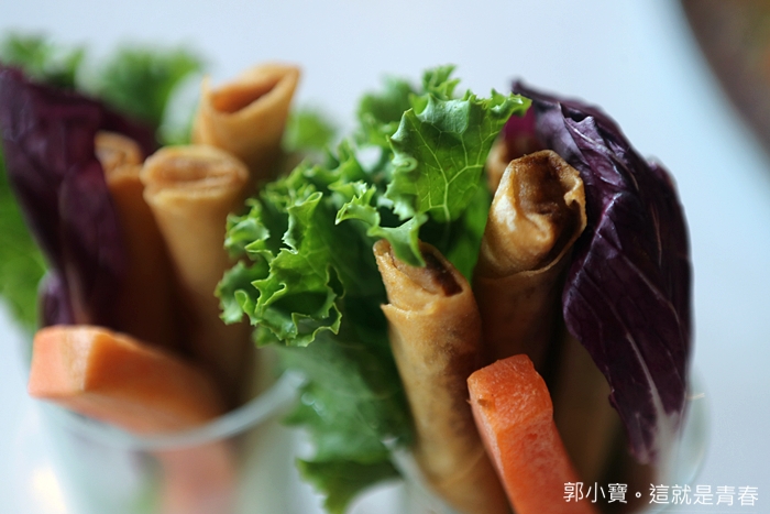 蔬菜跟鮮蝦春捲看起來就讓人食慾大開,WOO餐廳的蔬食都很新鮮,也都特別挑選過,當天吃到的蔬菜幾乎都不會過老或是刮口。 |