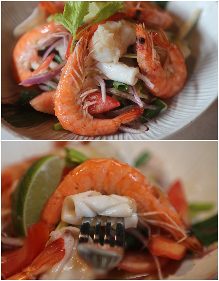 酸辣海鮮沙拉是我家太妃非常喜愛的一道菜,酸辣的比例抓得恰到好處,而且不是酸辣混在一起的那種,一口咬下可以先感覺到酸度,辣度在後面才會慢慢出現,對於炎熱的高雄來說,是開胃的好菜,蝦子的部分也都很彈牙。 |
