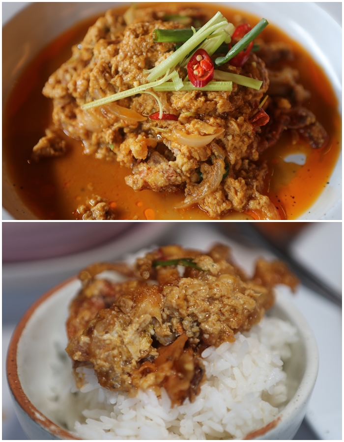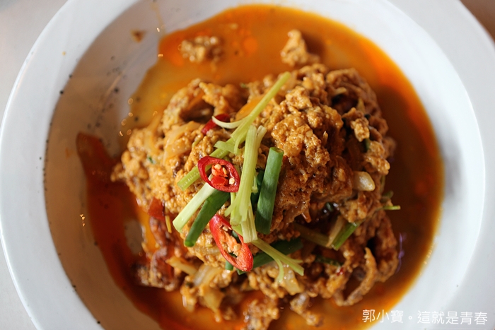 白飯殺手的金黃咖哩軟殼蟹,要點這道菜的話建議要搭配白飯,直接單吃的話會有點鹹,因為是用鹹蛋黃去炒得,蛋液緊緊的包在軟殼蟹上,入口的咖哩香氣跟軟殼蟹的口感真的非常不賴,但是還是要提醒一定要搭配白飯食用。 |