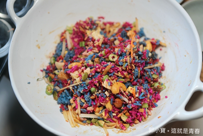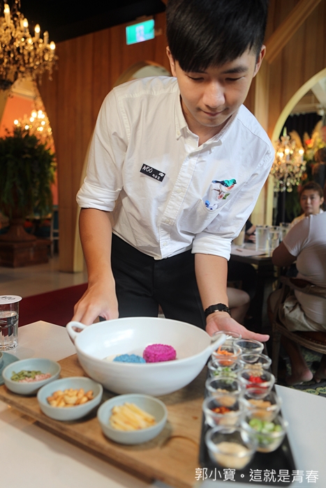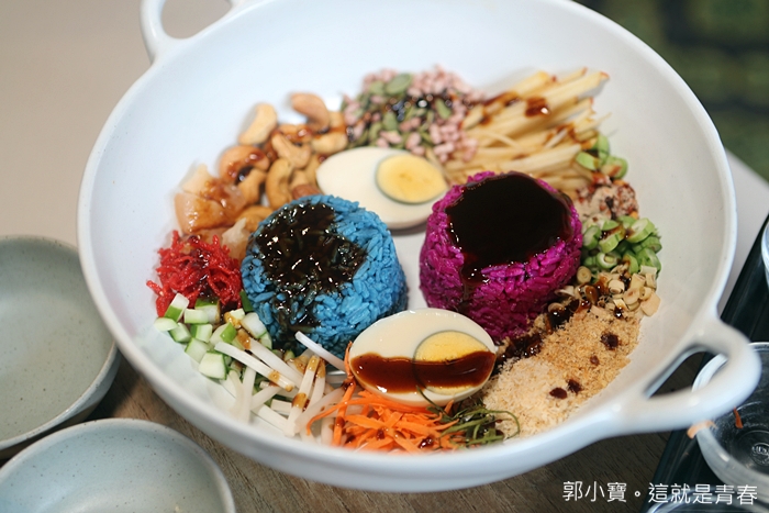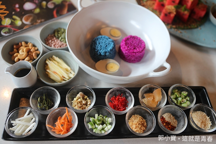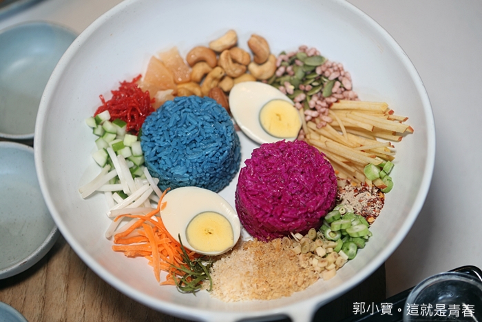 雙色米沙拉也是WOO的招牌料理之一,據說也是老闆從清邁那邊帶回來的,但是這一道菜倒是我第一次看過,所以我對他的興趣還滿高的,上桌的時候一整個配料相當的豐富。 |