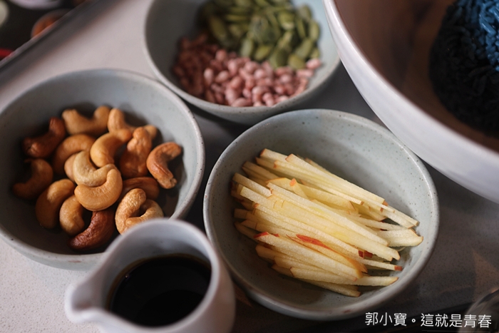 蘋果絲、腰果、南瓜子都是配色之一,看起來一整個就超級豐富的,所以我還滿期待它的味道是怎樣的。 |
