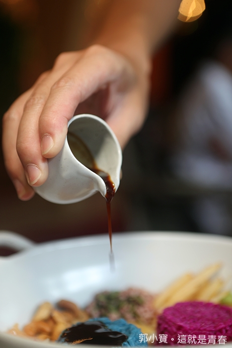 最後呈現的視覺感真的超級美的,第一次發現紫色的食物也可以那麼吸引人,以前紫色的食物只會聯想到茄子,很多人不敢吃茄子似乎就是它的顏色,雙色米沙拉的口感呈現的相當豐富,每咀嚼一口都可以感受到不一樣的口感跟滋味,這一道菜評價還滿兩極的,我跟太妃認為還不錯,吃起來味道層次雖然很豐富,但是又覺得很爽口,另一個朋友則是沒有那麼喜歡。 |
