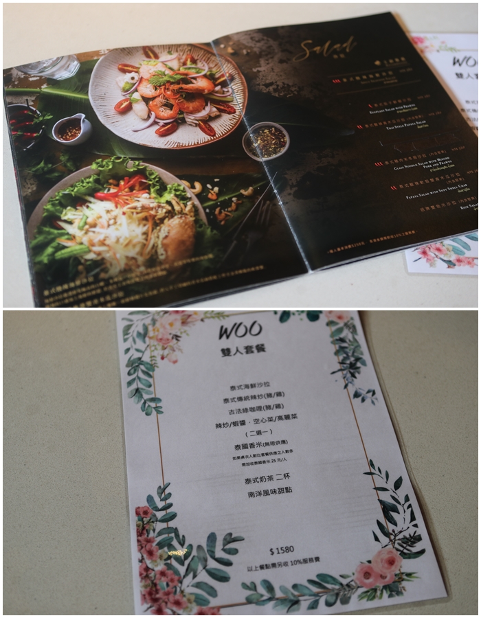 WOO的菜單也很美,翻了一下菜單的菜色非常多,很多菜色也確實是我在泰國常吃到的名菜,所以今天點的菜大多是比較特別跟幾款比較經典的菜色,另外WOO也有推出雙人套餐,所以人少也不用擔心,情侶約會也可以輕鬆享用,但是我還是認為一群人一起來最適合,泰式料理就是要一起享用才夠豐富!! |