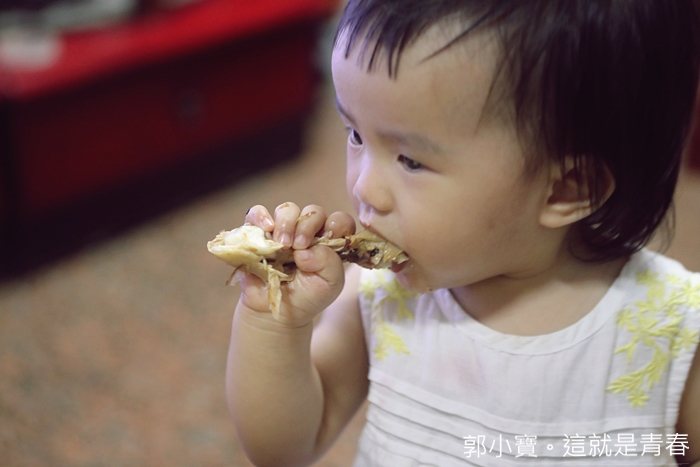 早期的鹽水雞肉吃起來確實都略為乾柴,但是鮮鹽堂的冰箱土雞肉吃起來真的非常嫩,且肉汁又多,看看我們家小朋友啃得那麼開心就知道多美味了,也因為是冰鮮土雞肉的關係,所以我們也比較放心給小朋友吃。 |